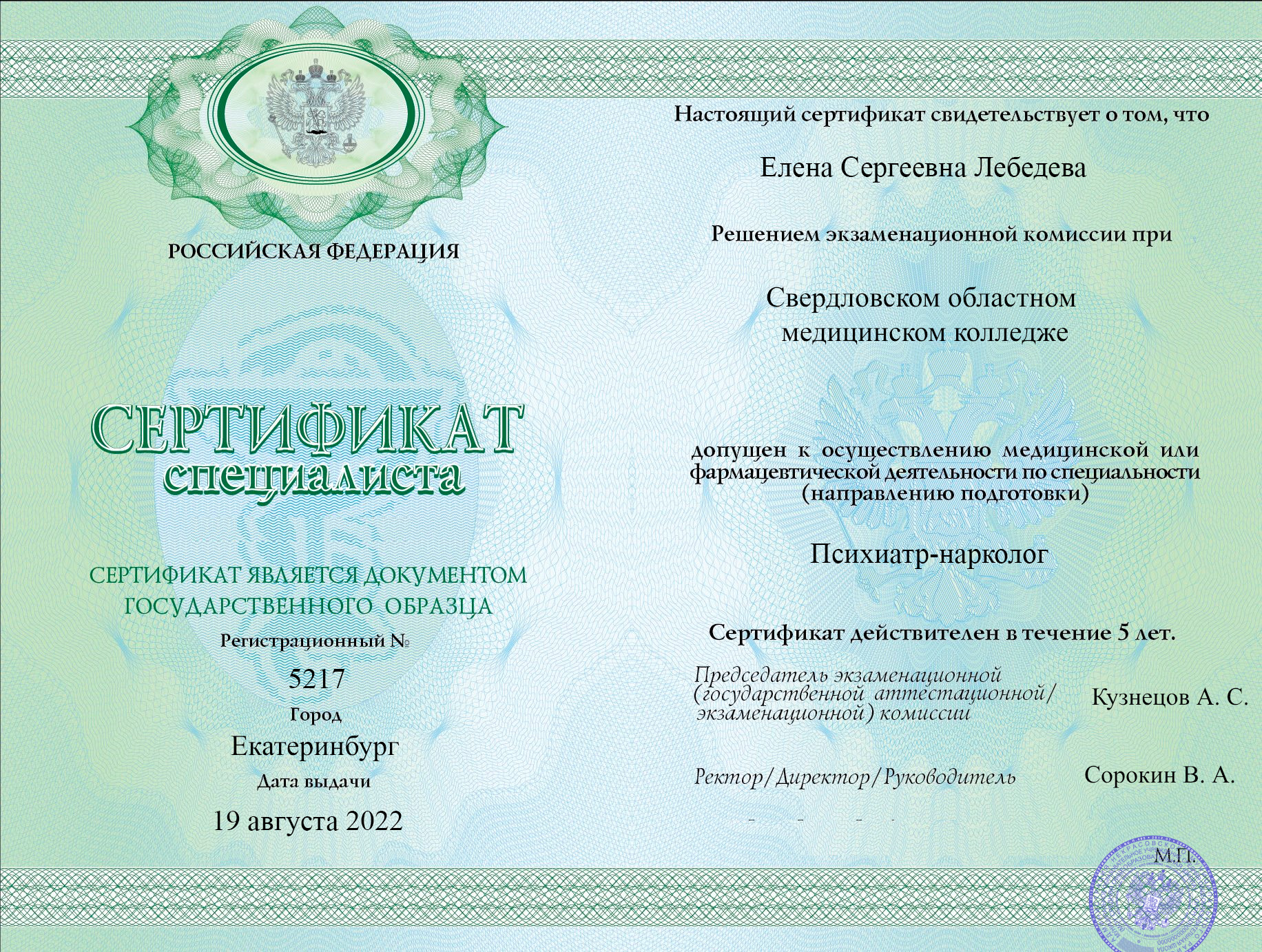 Елена Сергеевна Лебедева врач нарколог клиники доктора Стукаловой в Ивангороде